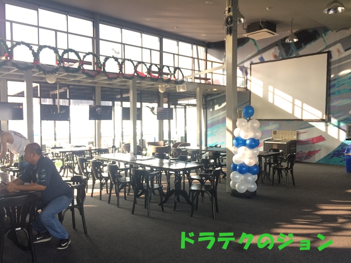 一階にはカフェテリアがあって、そこからコース全体を眺めることができたで。