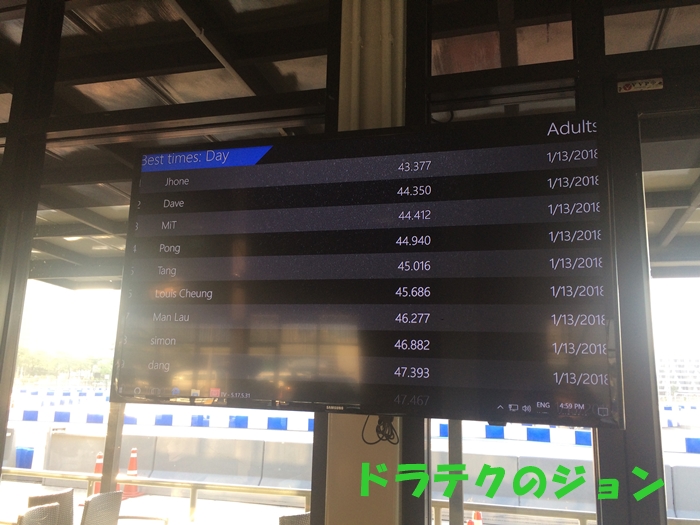 乗り換えの飛行機の問題から1セッションしか走れんかったで。インパクトスピードパークの常連さんたちと一緒に走ったけど、ダントツの1位やったで!
