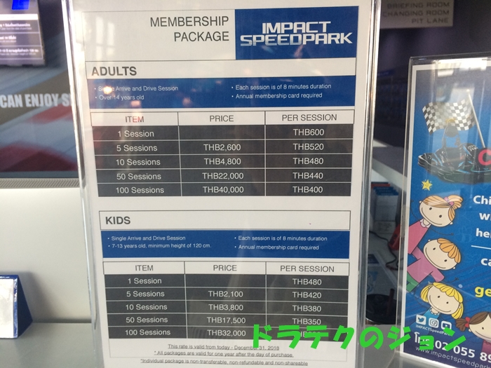 料金は登録料100バーツ。8分走行600バーツ。5回以上の走行やと割引があるで。ちなみにビーサンとかクロックス、ヒールは禁止やで。レンタルシューズ300バーツかかるで。