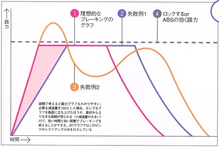 一定のブレーキを踏む練習は、ロック率8割というブレーキングの練習なんや。タイヤがロックする寸前をキープすることによってサーキットのタイムが上がるねん。
