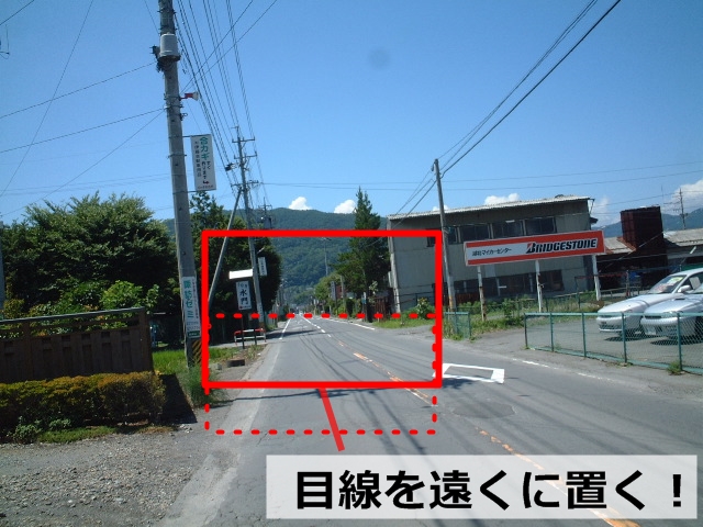 視力が悪い人は、シートポジションから上半身が前のめりになってたり、25m・20mとだんだん手前に目線を置きがちやから注意やで。