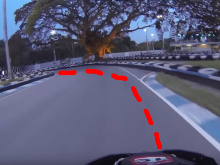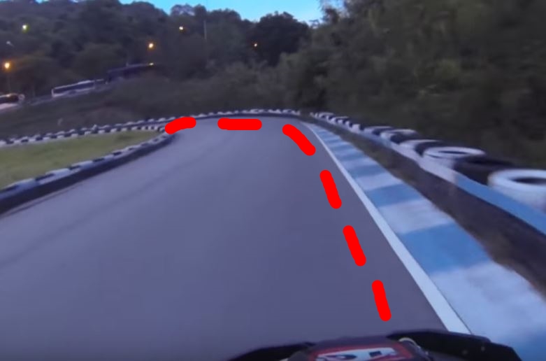 第九コーナーを綺麗に曲がれたら、写真の位置を走ることができるで。