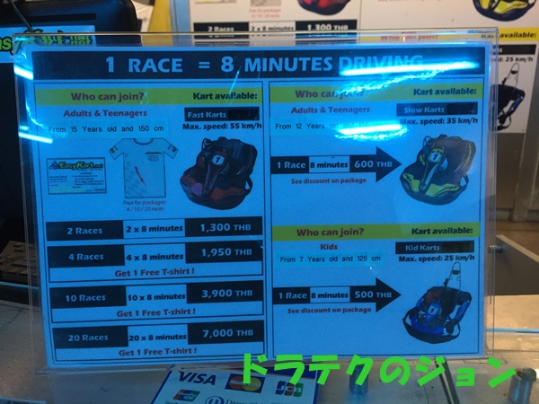 バンコク市内にあるカート場のわりには、値段はそこまで高くなかったで。
