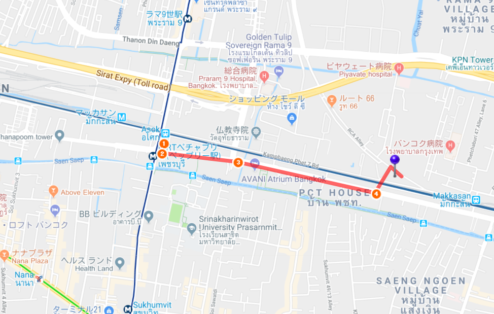 アクセス方法:MRTペップリー駅もしくは、マッカサン駅からバイクタクシー(60バーツ)でRCAプラザまで10分。
