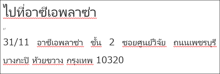 ↓のタイ語で書かれた住所と建物名を見せるとええで!