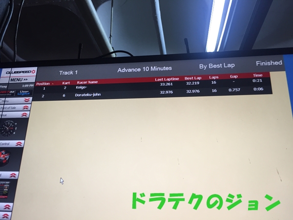 今回は1セッションしか走らんかったからアドバンスのカートにしたで。