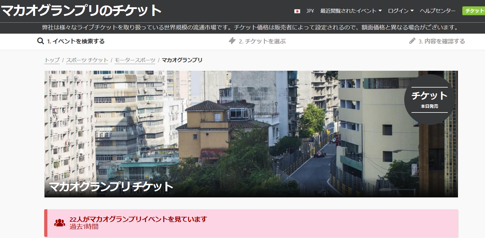 viagogoで取り扱ってるチケットは転売チケットとあってマカオグランプリのチケットは、公式価格の1.5倍〜2倍くらい高い感じやで。