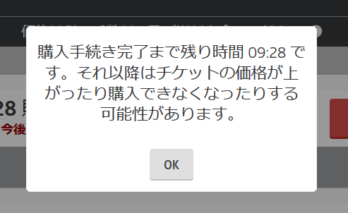 - viagogoサイト内で残り時間がでてきてチケット購入を急がされる。