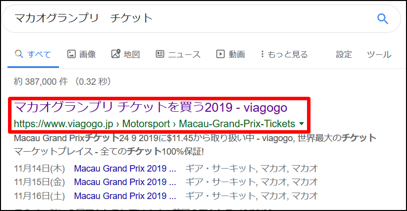 viagogoは、「マカオグランプリ チケット」で検索するとトップにでてくるサイトやで。