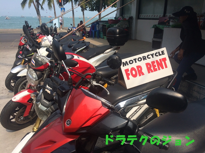 パタヤのレンタルバイクは24時間200バーツ(700円)からバイクを借りれるから色々行くならおすすめやで!国際免許なくても借りれるで。