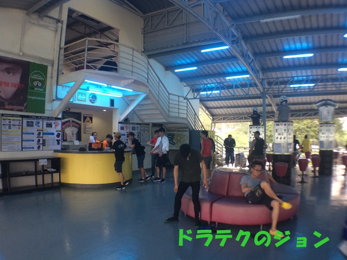 いつ行っても世界各国のお客さんが遊びに来るから、国際色豊かでおもろいで。パタヤにあるもう一つの時速100kmレーシングカートのサーキットに比べてもお客さん多いで。