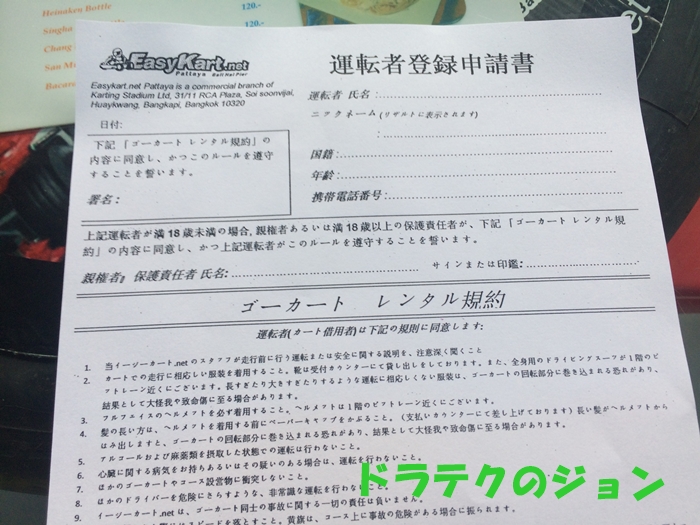 他のカートサーキットは、メンバーズカード登録費用に300円ほどかかるけど、パタヤのイージーカートは上記料金に含まれるで!