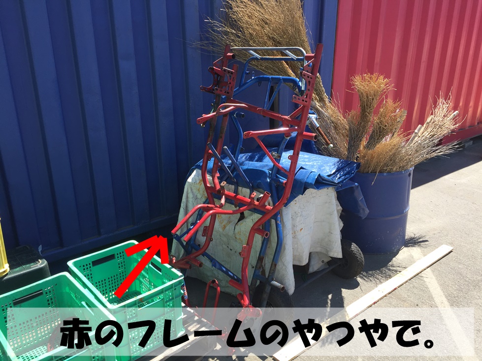 んで、1ヵ月半経って「カートできたで〜!」って連絡があったから、ブルーな気持ちで見に行ってん。だって、30万だしてあんなオンボロフレームみてもうたら、あなたもワクワクせいへんやろ??